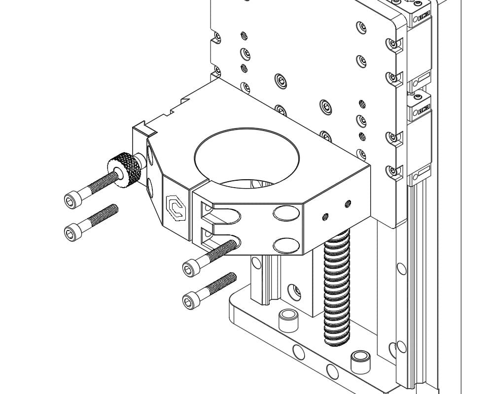 - Raise the mount to utilize the middle set of M6 mounting holes. Using a 5mm hex key, remove the four M6x35 bolts securing the spindle mount to the Z-axis.