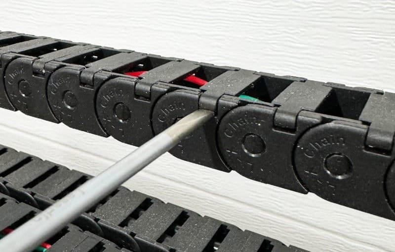 - Open all drag chain links using a flathead screwdriver.