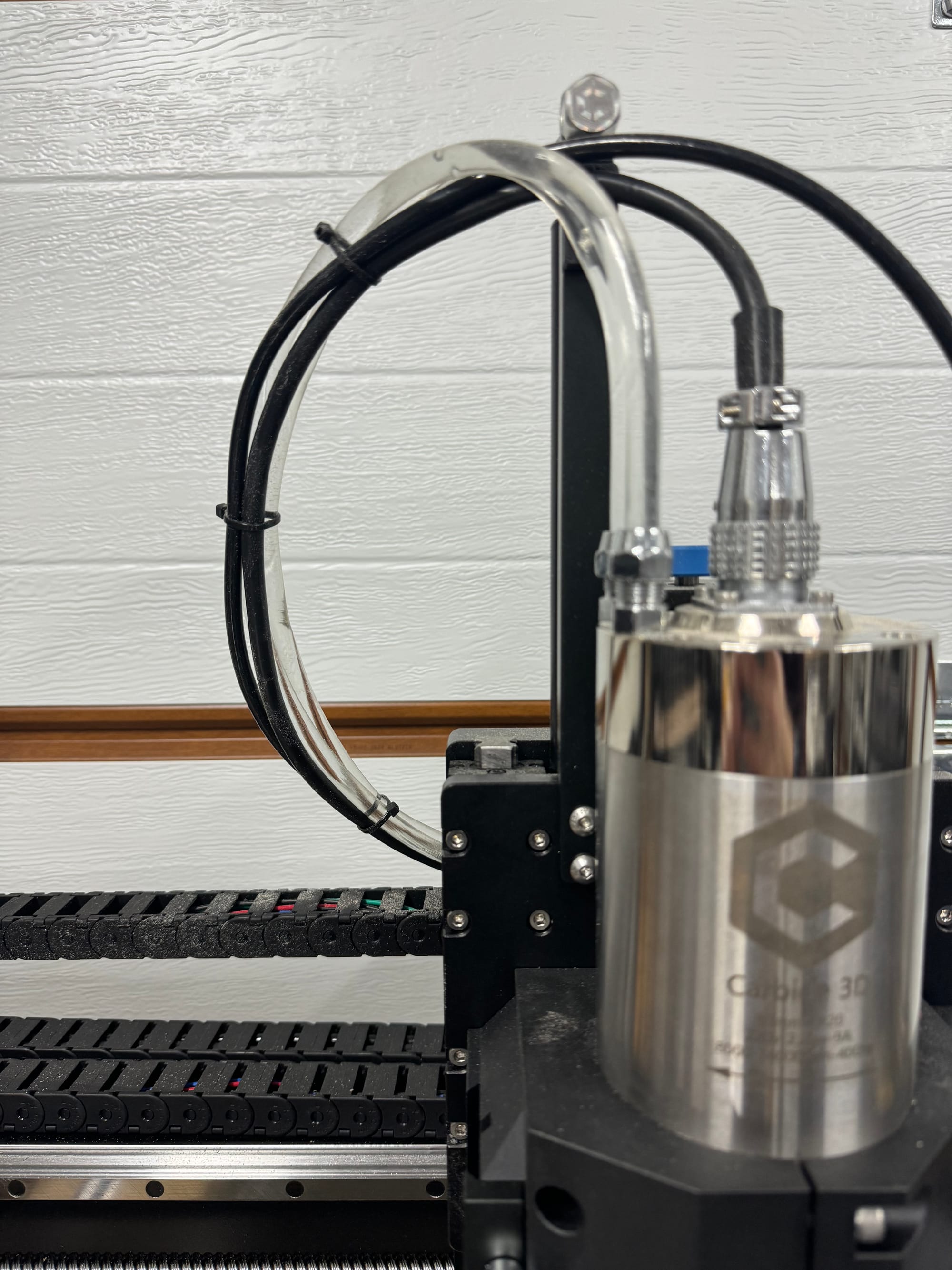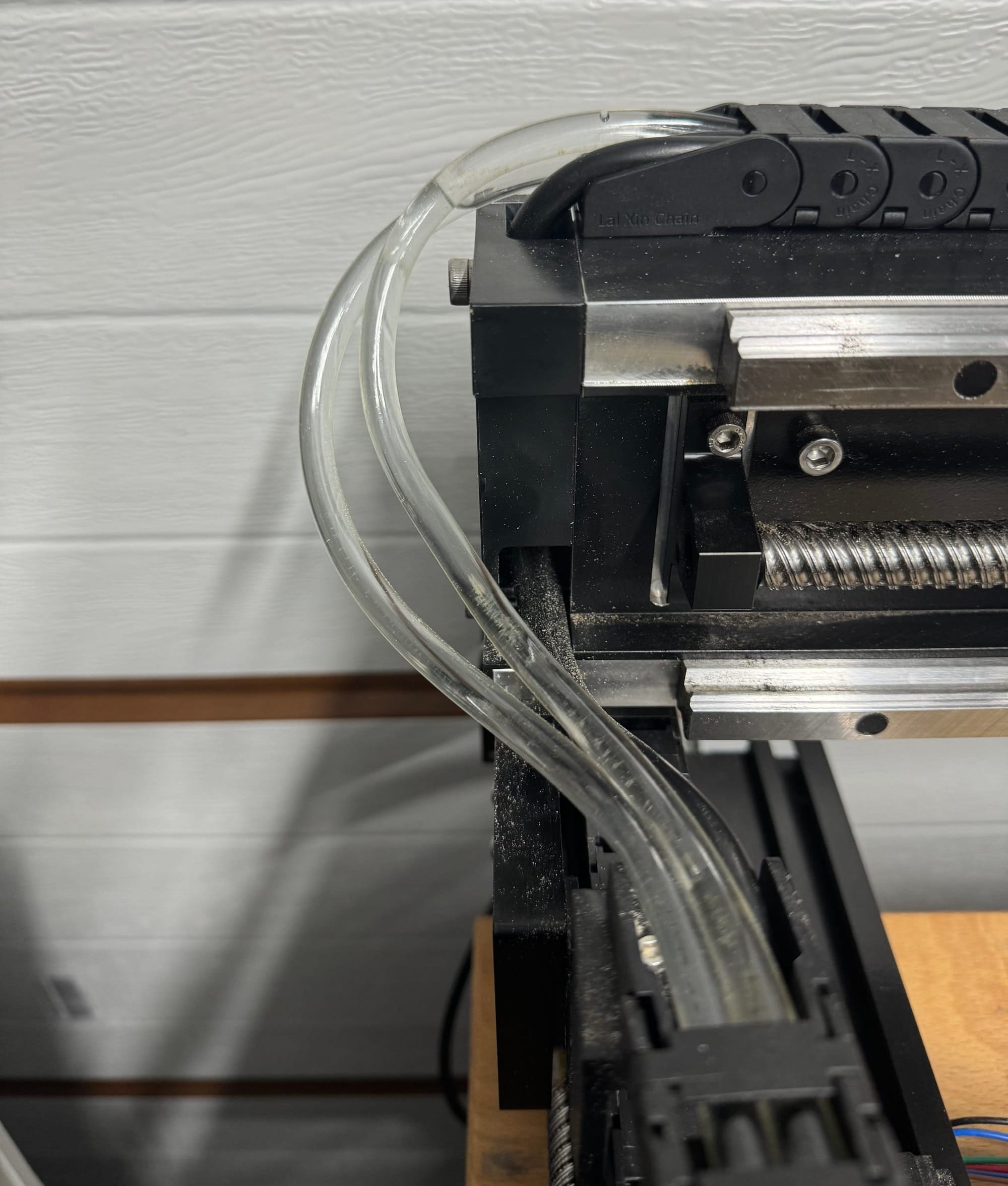 - DO NOT feed the coolant lines through the gantry end cap as this could hide a pinched or kinked hose.