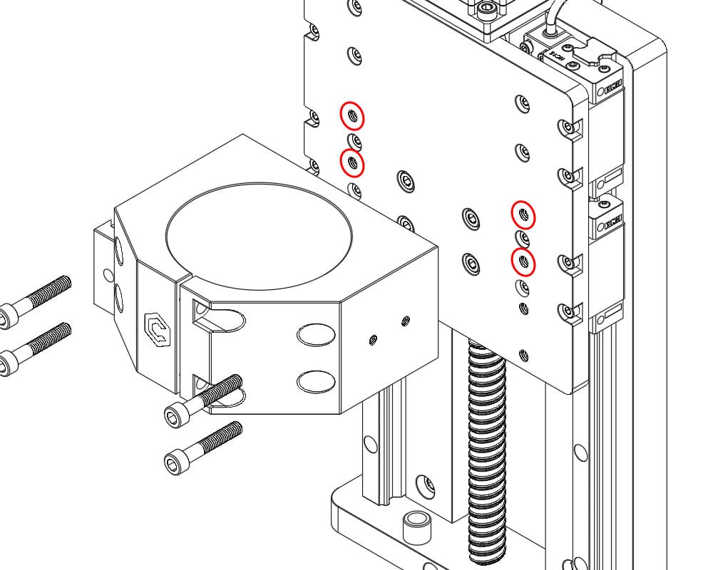 - Secure the spindle mount using a 5mm hex key using four M6x35 bolts.