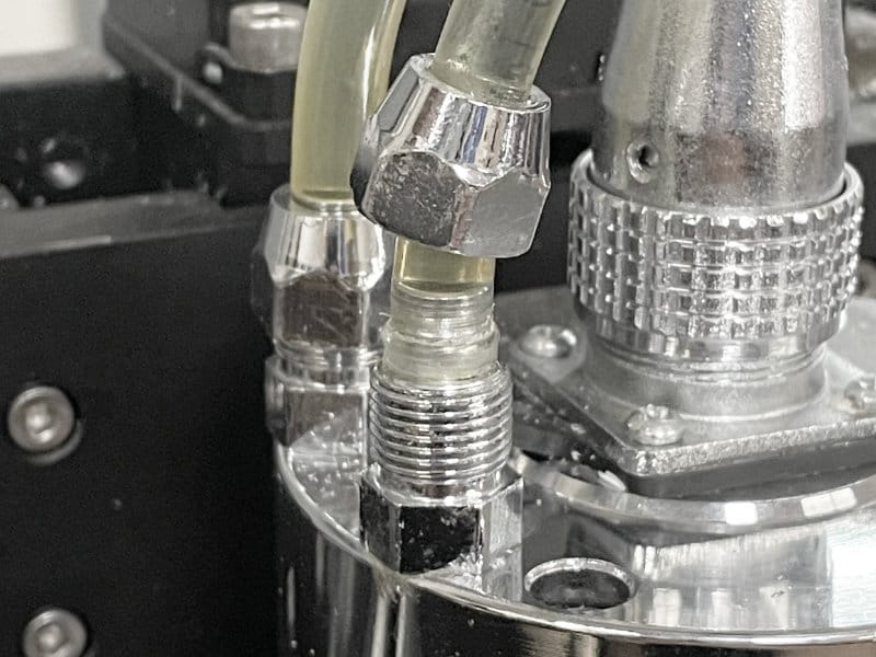 - Press the coolant line onto the coolant fittings. If needed, the end of the coolant lines can be warmed in hot water to increase flexibility.