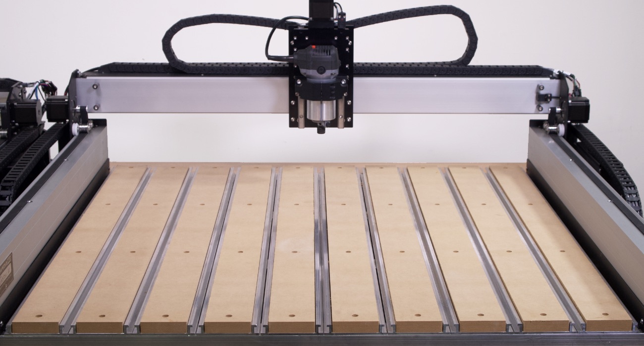 All of the Shapeoko machines are built on our Hybrid Table. It's a grid of custom extrusions that form a rigid base for the machine.