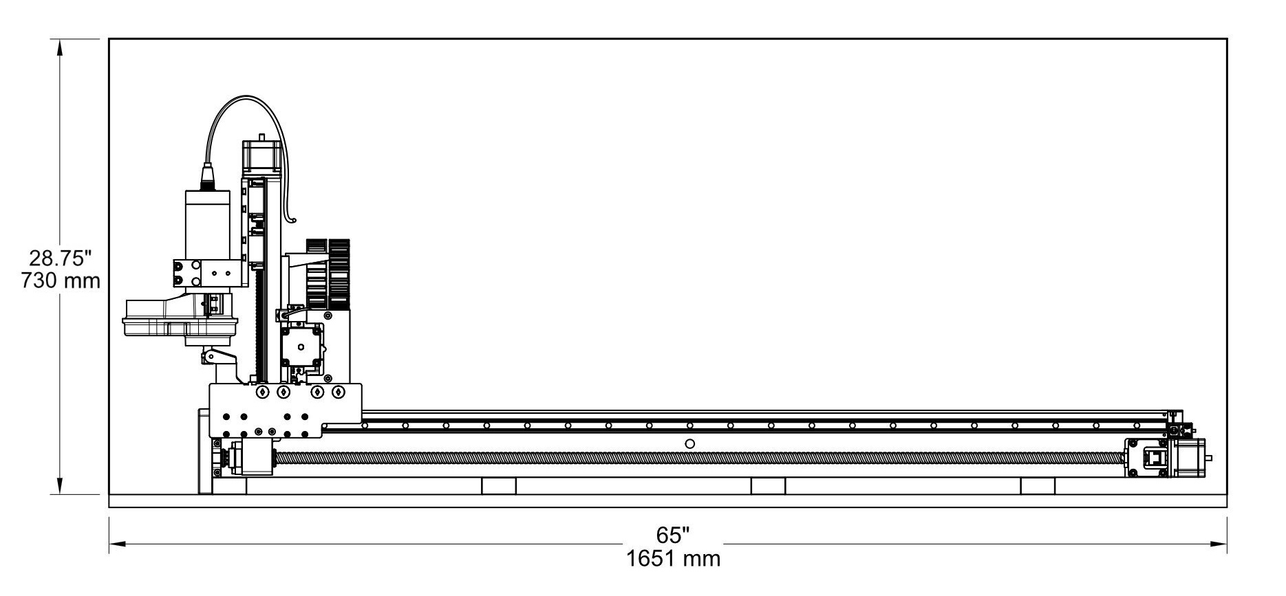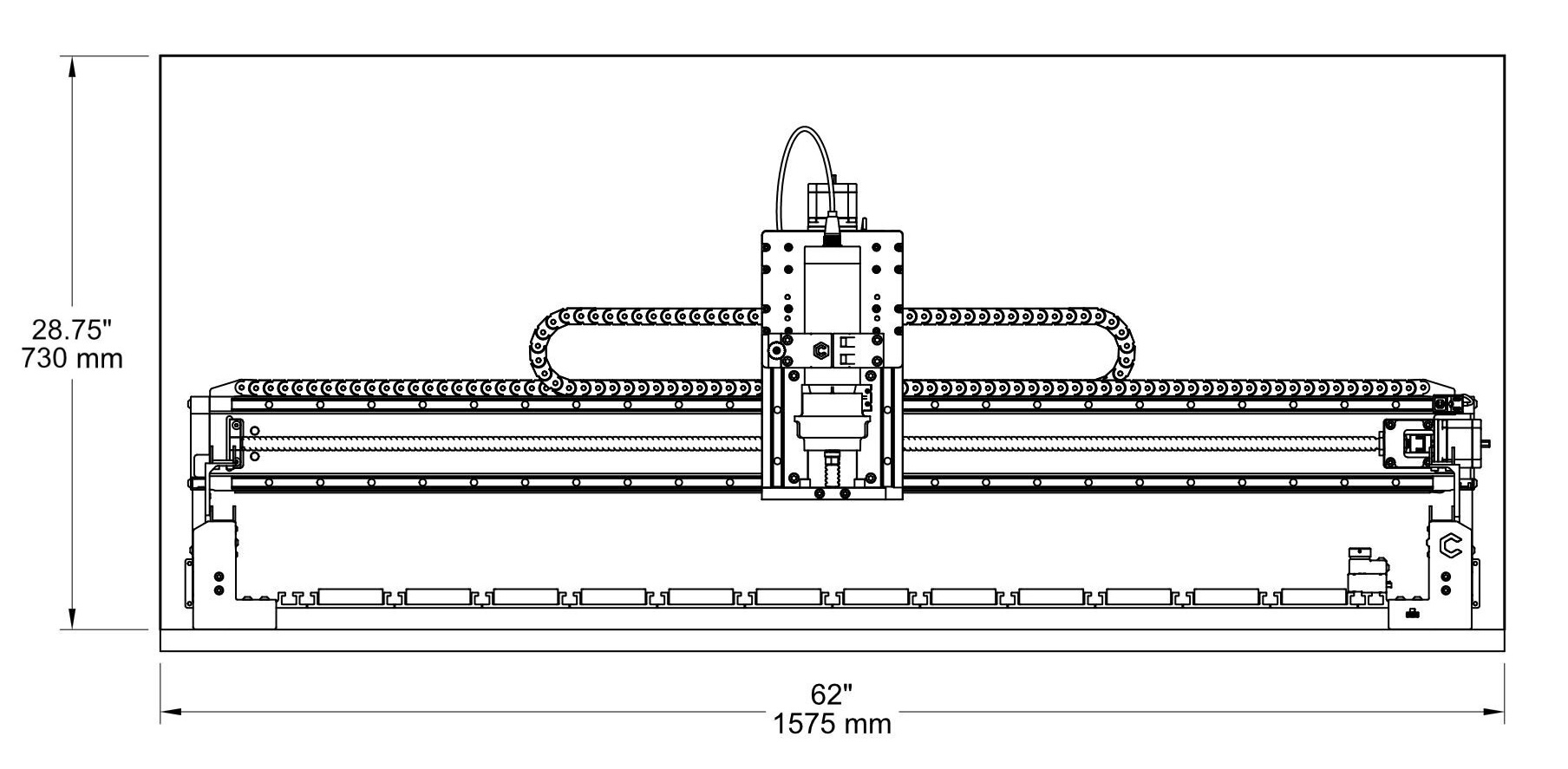 The Shapeoko 5 Pro needs to be placed on a table that is strong enough to support the machine and the materials being cut. The table should be big enough to fit the machine, but the exact size beyond that is up to you. The images below provide some context to the dimensions listed above to help you decide how big the table should be for your needs.